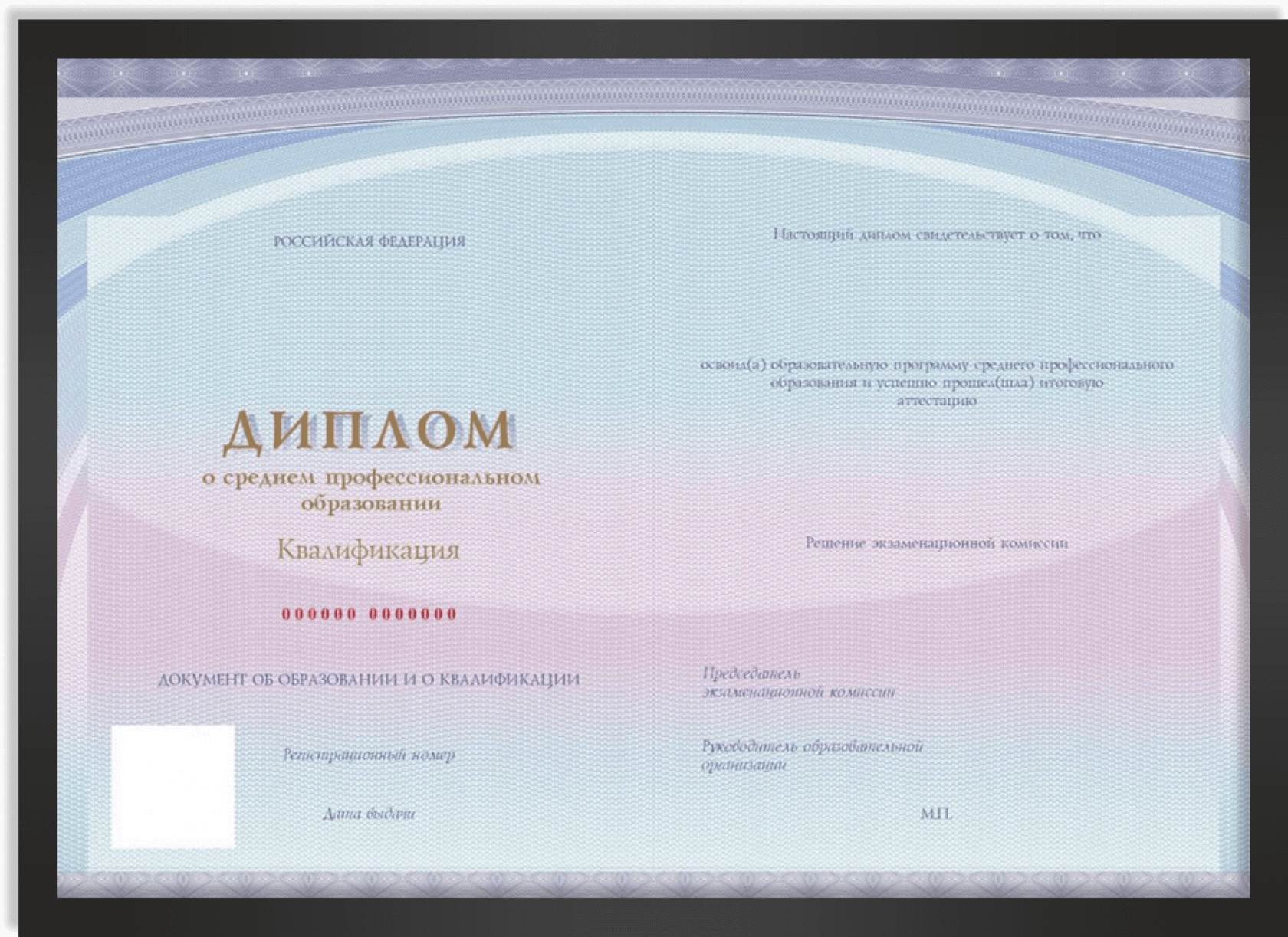 Образец диплома о СПО