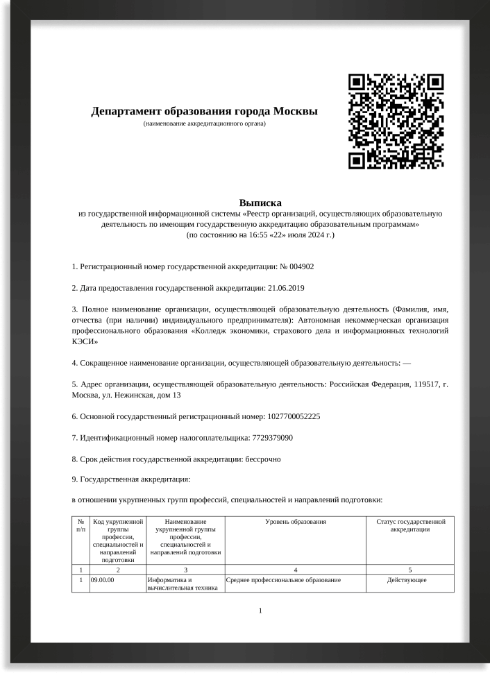 Аккредитация сетевой программы 09.02.07 «Информационные системы и программирование» совместно с Колледжем экономики, страхового дела и информационных технологий КЭСИ