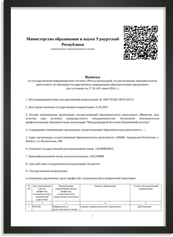 Аккредитация сетевой программы 09.02.07 «Информационные системы и программирование» совместно с Международным Восточно-Европейским колледжем